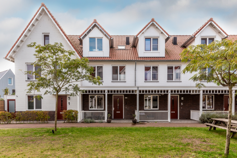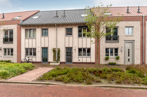 Aan de voorzijde biedt de woning uitzicht op een groene strook, wat zorgt voor veel privacy en een rustige leefomgeving zonder verkeersdrukte. De lichte woonkamer is voorzien van een stijlvolle plavuizen vloer met vloerverwarming, en er is voldoende ruimte voor een gezellig eetgedeelte. Dankzij de openslaande deuren heeft u een directe verbinding met de zonnige achtertuin. De halfopen keuken is uitgerust met alle gewenste inbouwapparatuur en ook hier kunt u via een loopdeur de achtertuin bereiken.